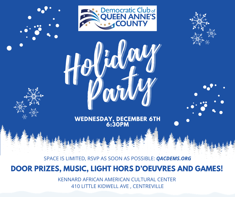 The Queen Anne's County Democratic Club is pleased to announce it's 2023 Holiday Party!