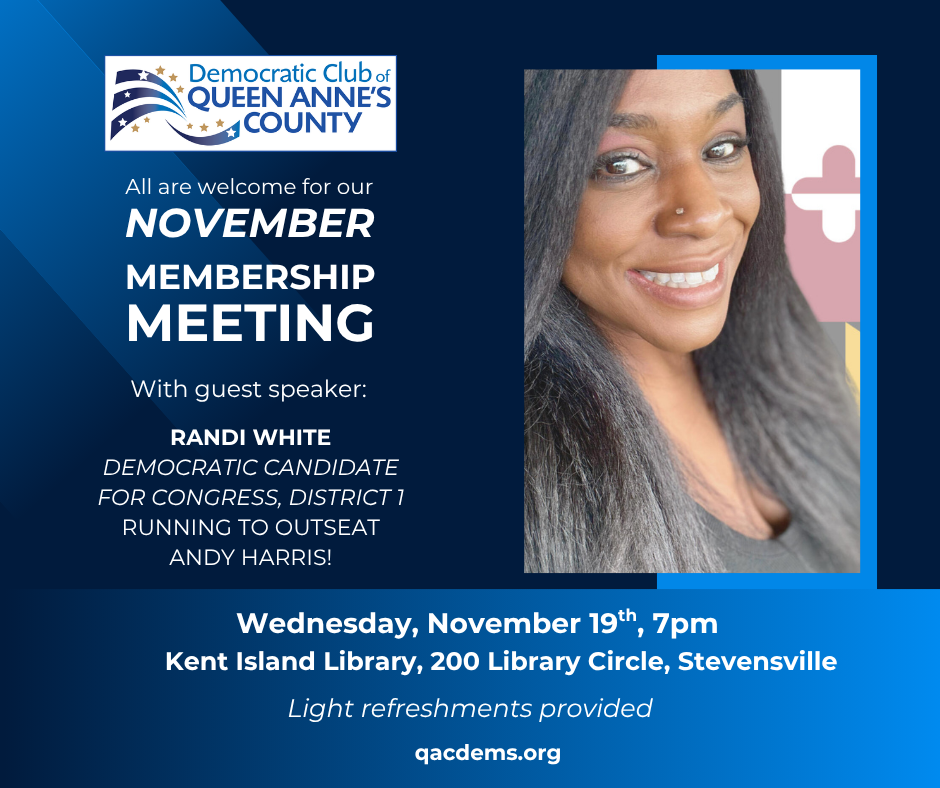 We are pleased to host Randi White, Democratic candidate for US Congress running against Andy Harris, our eight-term Congressman.